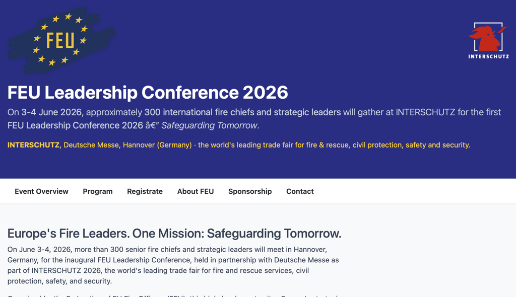 FEU Leadership Conference, finner sted 3.–4. juni 2026 i forbindelse med Interschutz i Hannover, Tyskland. Ambisjon er å etablere Europas ledende strategiske møteplass for ledere som former fremtiden for brann- og sivilbeskyttelsestjenestene.